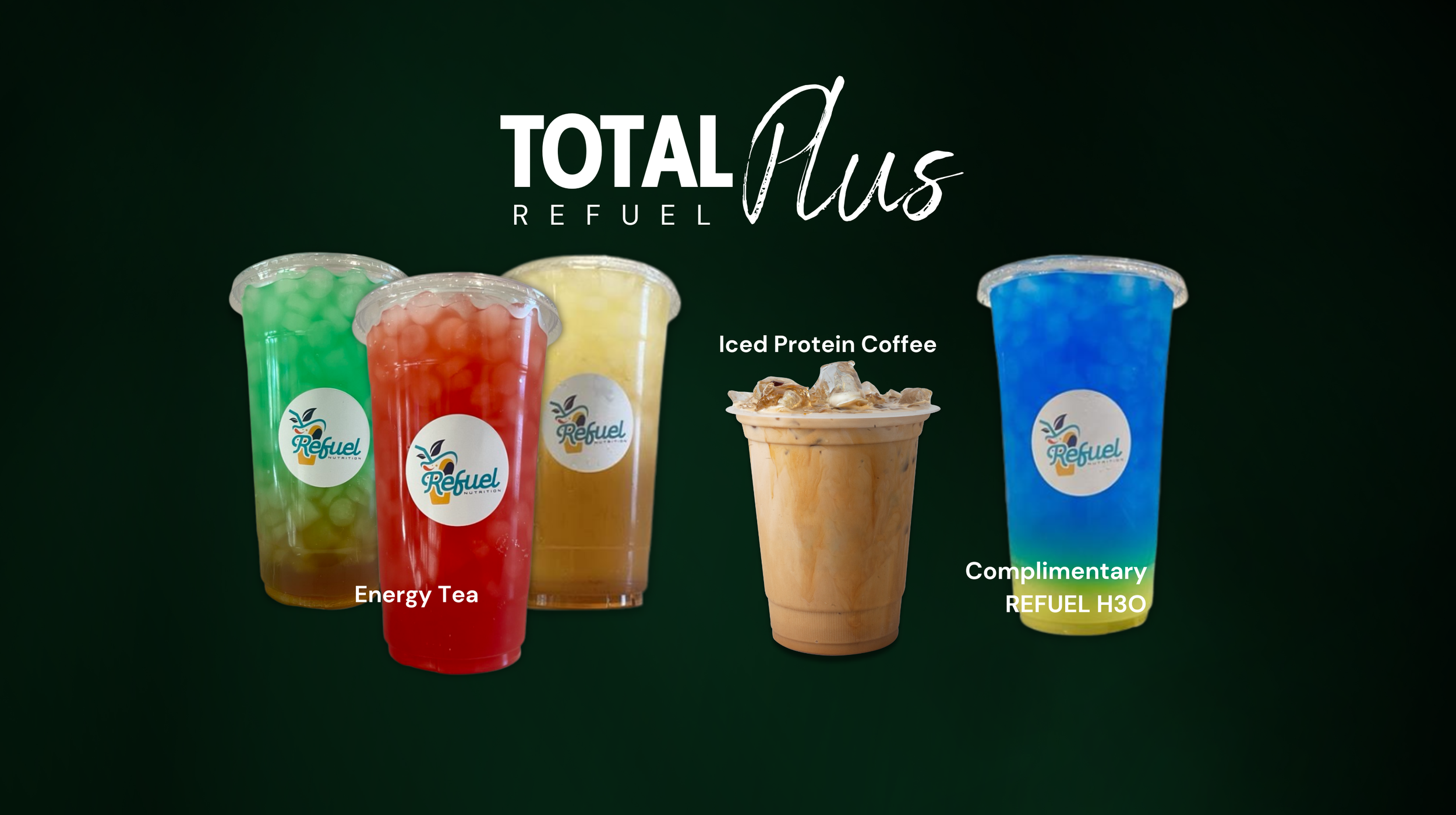 The Total Refuel package is your all-in-one wellness solution, designed to power productivity, fuel recovery, and keep your quests refreshed. With a balance of iced protein coffee, an energizing tea, and a hydration option, this package covers every need — from morning kickstart to mid-day boost to post workout recovery.